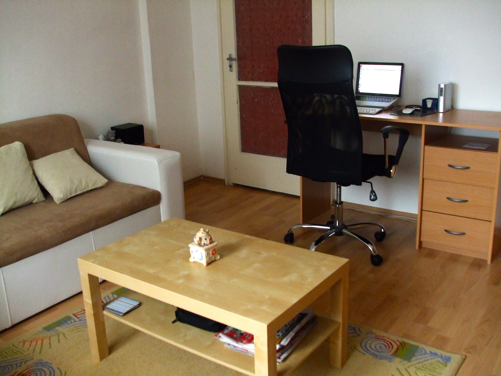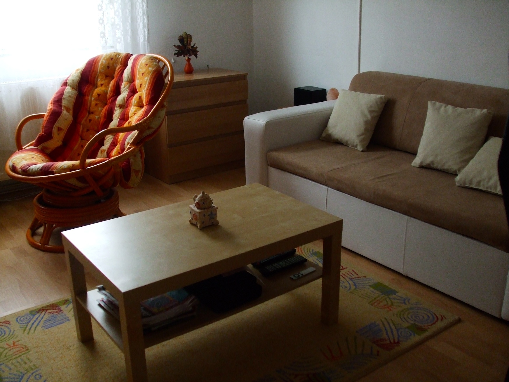 Meg kell említenem a berendezkedés hősi „halottját” is, az asztali ‘tapizásra egyre nagyobb fényt adó’ lámpa ugyanis nem élte túl az eseményt, így fájó szívvel búcsút kellett tőle vennünk, így viszont el lett döntve az az eddig kérdéses rész, hogy legyen-e még lámpánk. :D