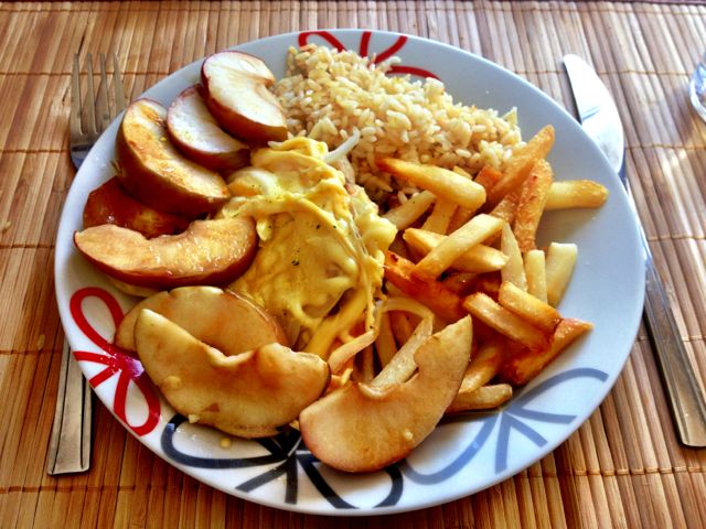 Első lépésként vékonyabb szeletekre vágjuk a csirkemellet, kevés sóval meghintjük, egyenletesen eloszlatjuk a húson, majd kevés olajban aranybarnára sütjük. Felszeleteljük az almát és a hagymát, majd amikor kellőképp átsült a hús egy jénaiba helyezzük, ezután rápakoljuk a felvágott almát és a hagymát, tetejére pedig trappista sajtot reszelünk. Az egészet egy röpke 10 percre behelyezzük a sütőbe alacsonyabb fokon, végül amikor a sajt teljesen rásült lekapcsoljuk és már tálalhatjuk is sült krumplival vagy rizzsel (vagy esetemben mindkettővel :D).