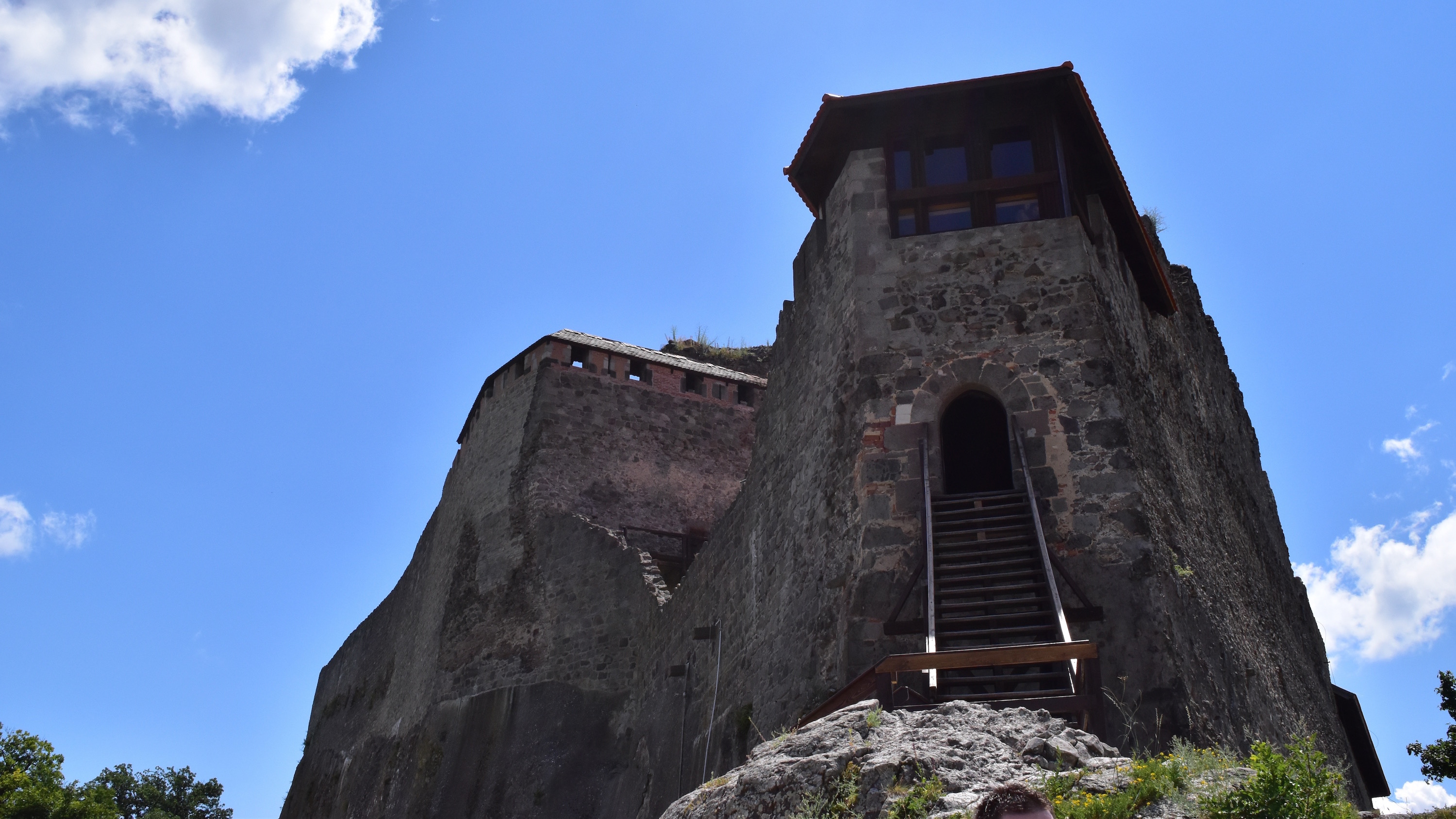 Utolsó teljes napunkon Szentendrétől ideiglenesen megválva Visegrád és Esztergom bevételét céloztuk meg. Mindkét helyen először jártam, ám csak egyikről mondható el, hogy nem utoljára. A napot Visegrádon kezdtük, természetesen a várat megcélozva, mely nem kis magasságban figyelt bennünket. Igazi erdei kirándulás vette hát kezdetét, persze nem a meredek, sűrű erdős utat választottuk, hanem a szerpentines betonon gyalogoltunk, azaz majdnem dupla annyi utat tettünk meg, mint amúgy kellett volna, de ez egyáltalán nem jelentett problémát. Az Úrfinak már volt szerencséje erre várni, így felkészített előre, hogy ha netán egy másik hegyen kötnénk ki, szemben a várral, nincs minden veszve, összeköti őket egy út, és tényleg! Sikeresen feljutottunk a magasba, csak épp a vár volt tőlünk távol, így tovább bandukoltunk, mígnem elértük célpontunkat. A várba belépve gyönyörűszép panoráma tárult elénk, szerint a látogatásunk nagy részében itt időztünk el a legtöbbet. Nem csoda, hiszen a vár maga számomra hatalmas csalódás volt. Az eddig látott várak és az Erőd után ez szinte nulla történelmet adott magáról az építményről, csupán random kiállításokkal meg egy maréknyi panoptikummal próbálták feldobni, sikertelenül. Ami még érdekes lehetne (korabeli fotózás, íjászat, lovaglás) természetesen fizetős, így jóindulattal is egy fél órás „kaland” az egész. Hát, ha másért nem is, de legalább elmondhatom, hogy itt is voltam.